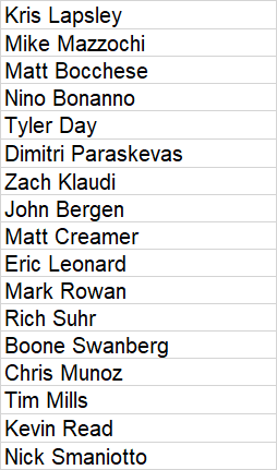 of our batting order in Jeff, Mark, and Hutch. Of the other seven, two are